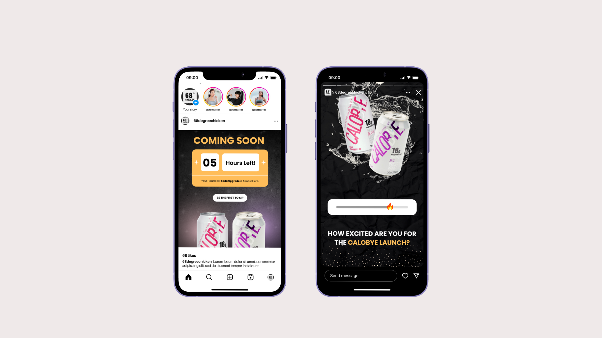 On Instagram Stories, the product appears blurred in the background, allowing viewers to recognize the silhouette of the Calobye cans while maintaining the mystery of the new launch.