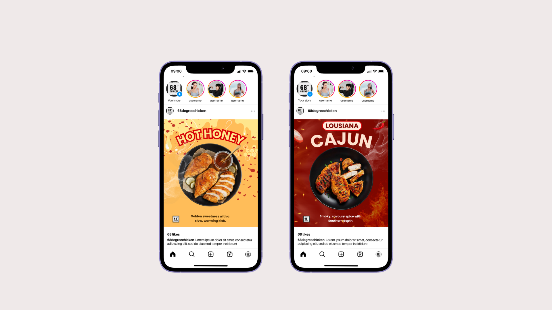 A social media launch campaign designed to introduce the new Hot Honey and Louisiana Cajun flavours. The campaign moves from teaser to reveal, followed by flavour-focused and nutritional posts that help audiences understand the taste profile and functional benefits of each product.