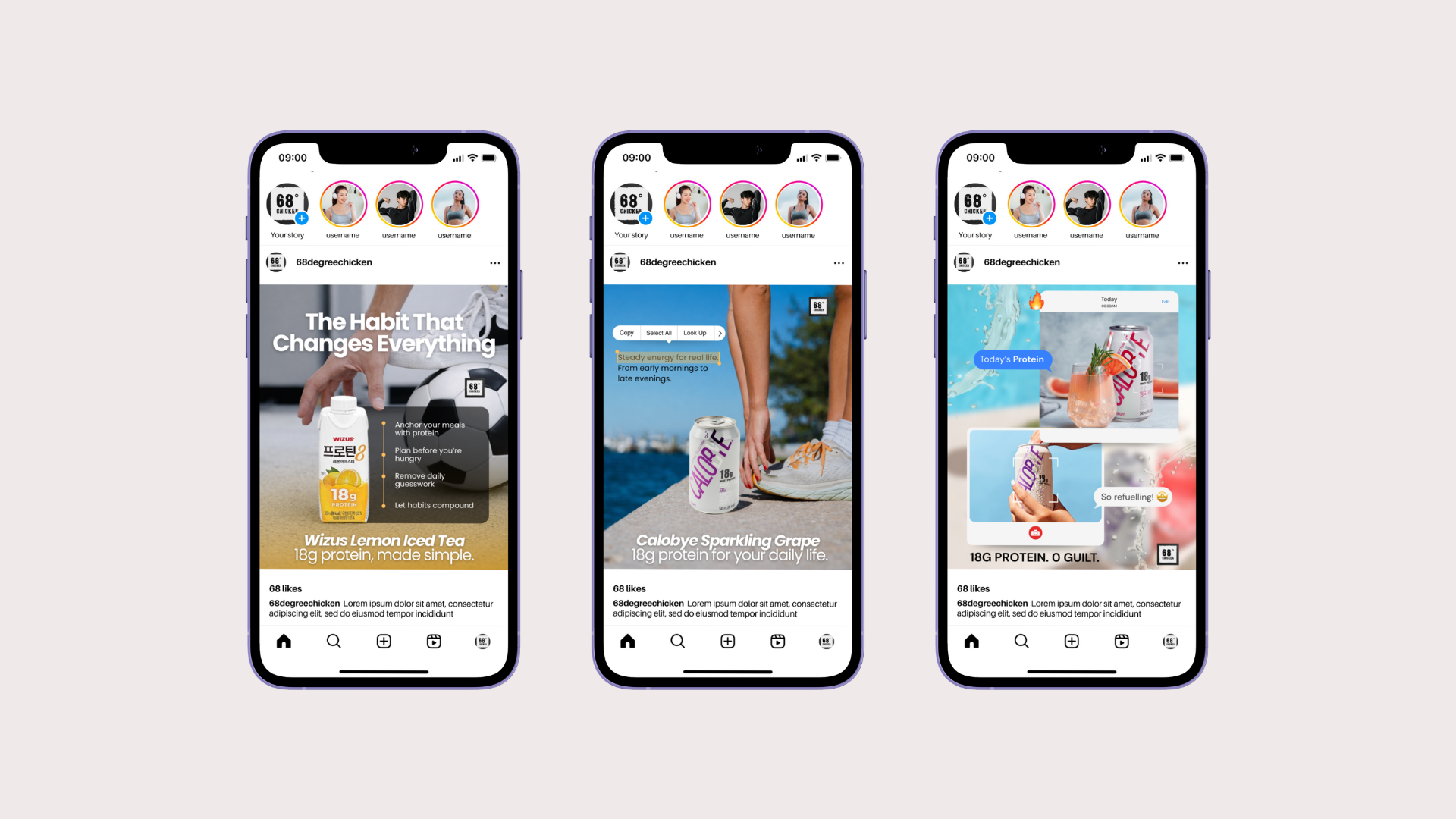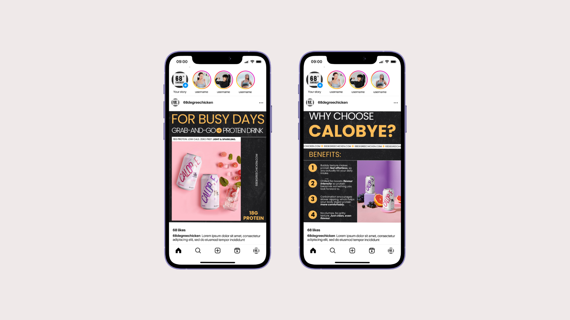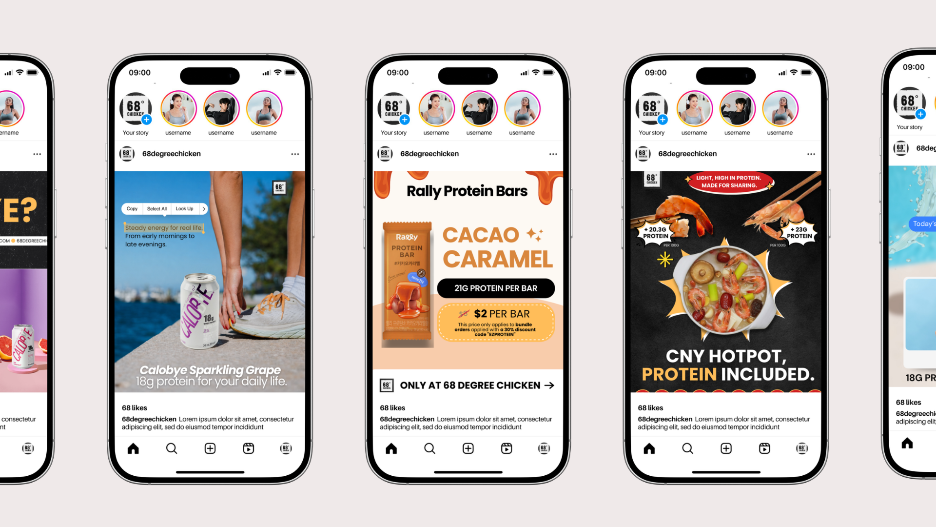 A social media content series designed to promote 68 Degree Chicken through a balanced mix of flavour-focused, product-led, and lifestyle-driven posts. The content highlights the brand’s unique inner fillet cut, showcases the different flavours, and educates audiences on the nutritional benefits of high-protein meals. Complemented by motivational fitness messages and simple meal inspiration, the posts position 68 Degree Chicken as a convenient, healthy protein choice for busy individuals and fitness-focused consumers.