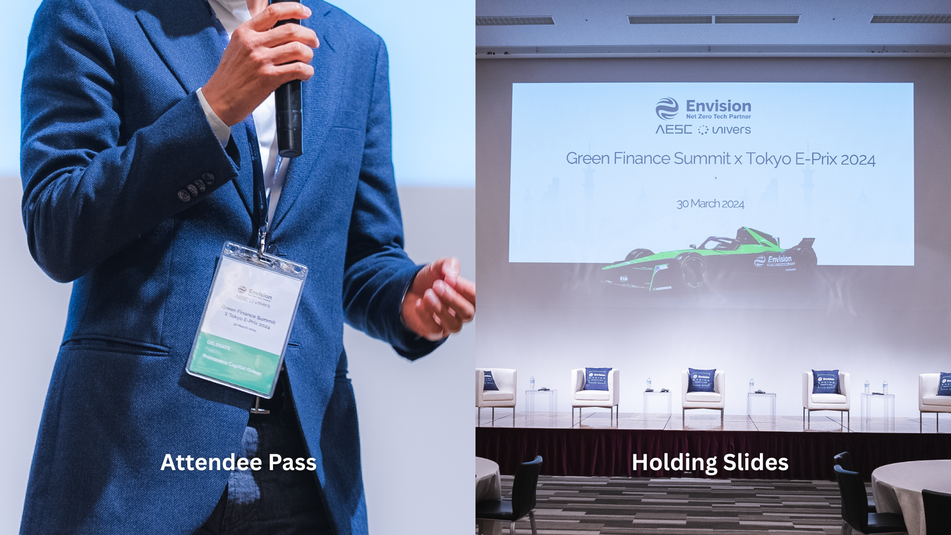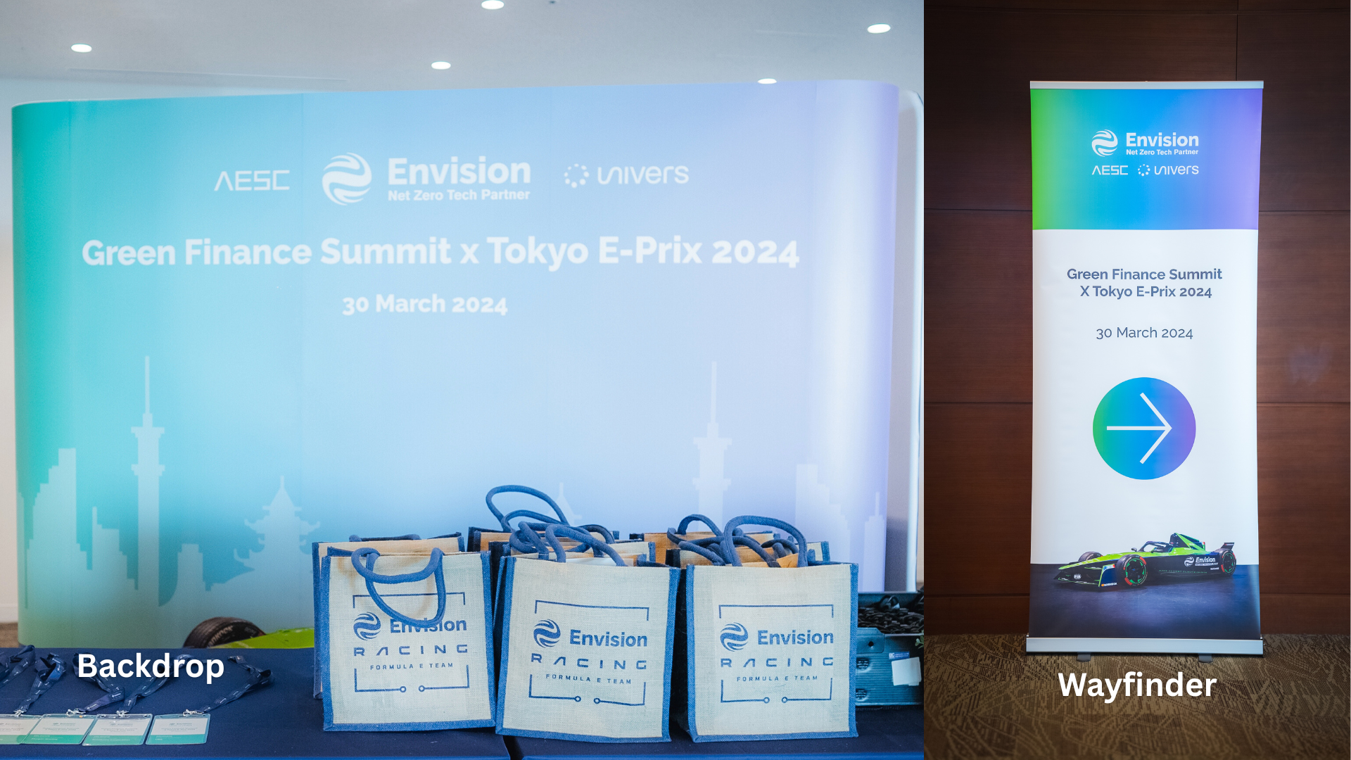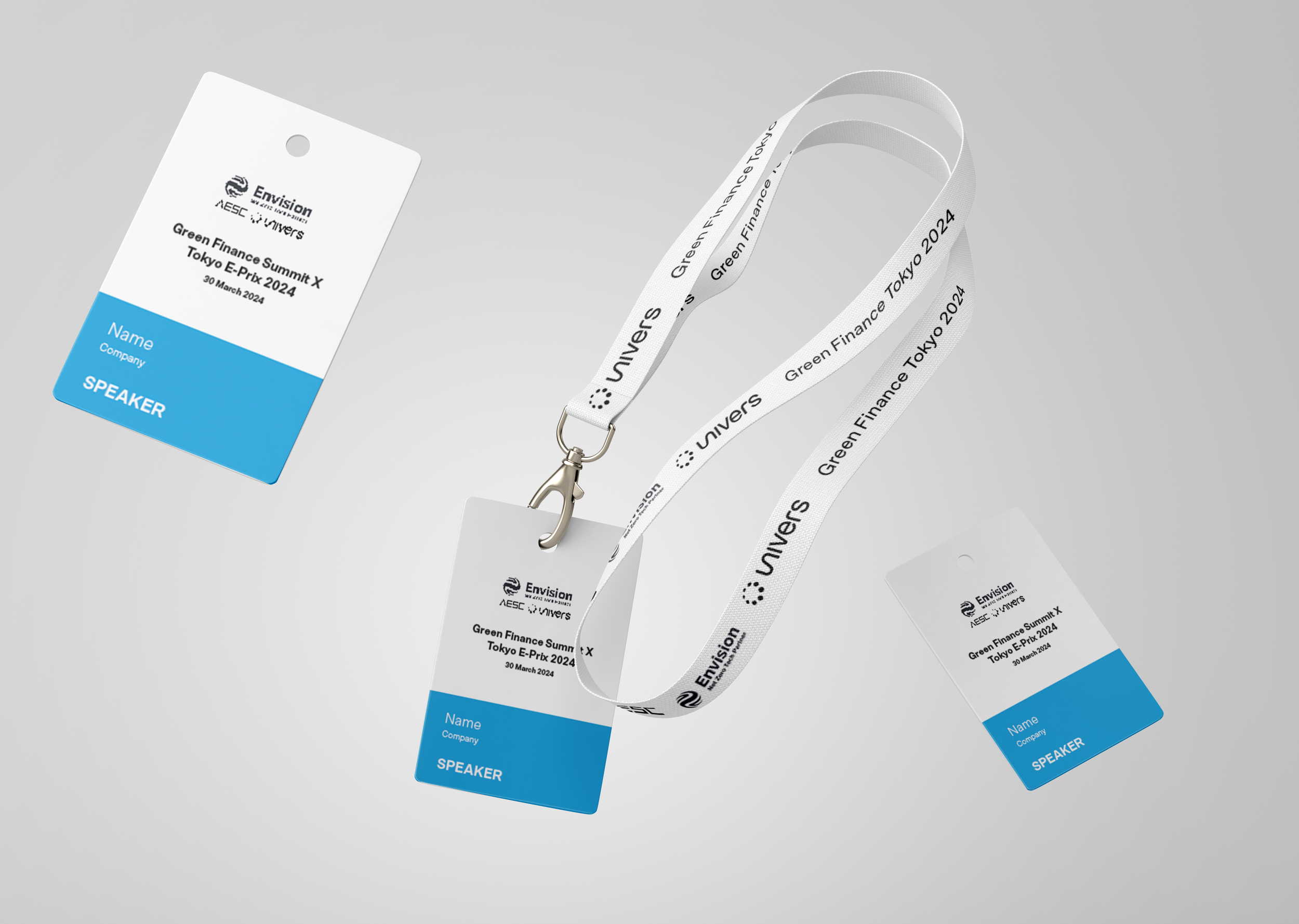 For the Green Finance Summit x Tokyo E-Prix Event with Univers, I was responsible for designing a range of event collaterals, including the backdrop, wayfinding, attendee passes, and holding slides.